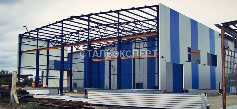 Следующим этапом является монтаж каркаса. Каркас из металлоконструкций собирается из стальных профилей, которые поставляются в готовом виде. Это значительно ускоряет процесс монтажа и обеспечивает высокую точность сборки. Каркас включает вертикальные колонны, горизонтальные балки и кровельную систему. Особое внимание уделяется креплению элементов, чтобы обеспечить устойчивость конструкции.