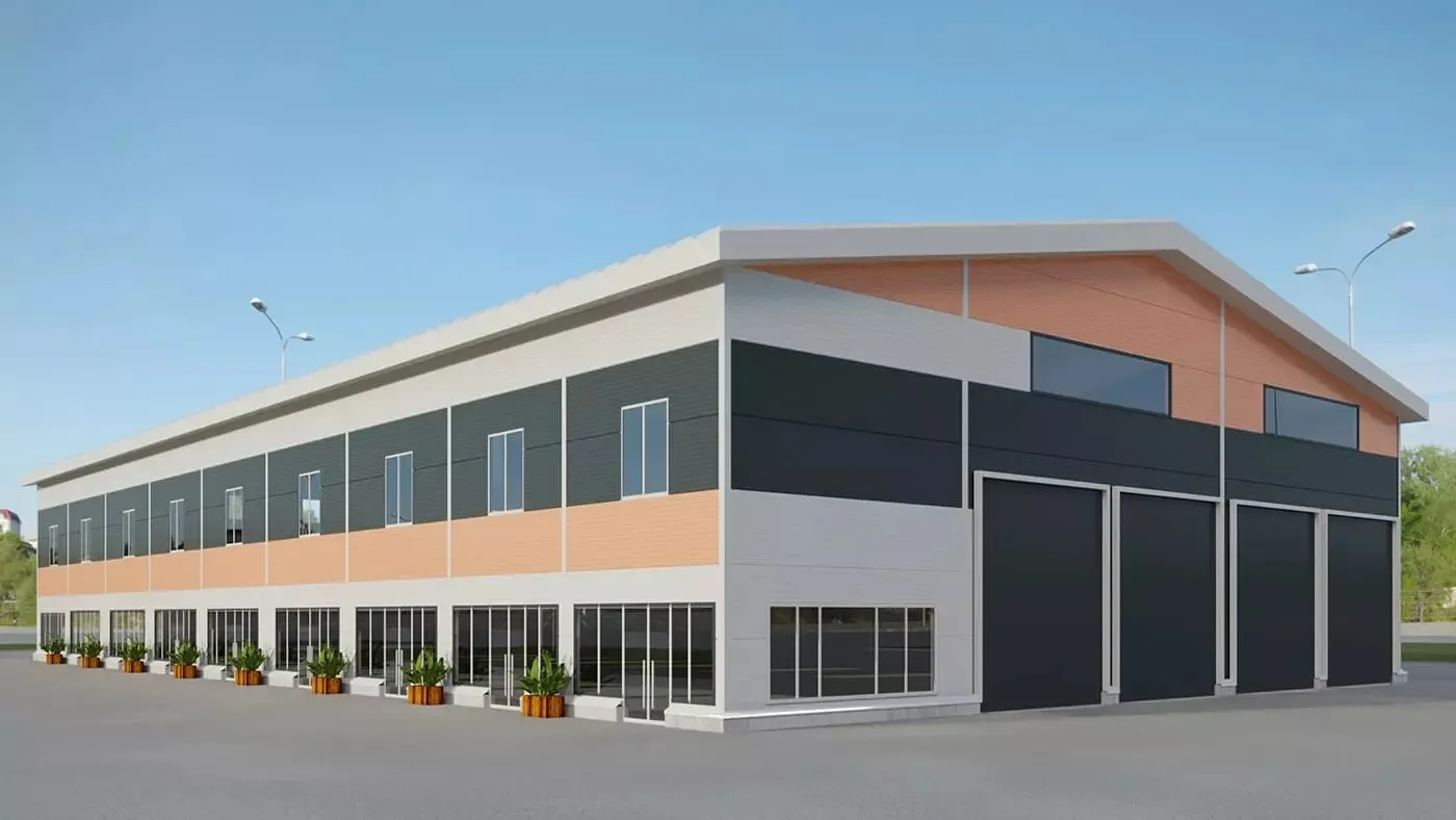 Каркасное здание представляет собой образец конструктивной гибкости и эффективности. Основа здания, состоящая из металлического каркаса, обеспечивает высокую степень прочности и устойчивости к внешним воздействиям. Благодаря модульной структуре возможно быстрое расширение площади либо перепланировка внутренних помещений, что идеально подходит для адаптации к требованиям бизнеса.