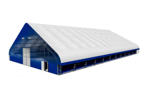 Каркасно-тентовые ангары представляют собой быстровозводимые конструкции, основой которых служит металлический каркас, покрытый прочным тентовым материалом. Обычно для каркаса используется легированная сталь, обладающая высокой устойчивостью к коррозии и механическим повреждениям. Тентовый материал изготавливается из современных полиэфирных тканей с ПВХ-покрытием, что обеспечивает надежную защиту от погодных условий.