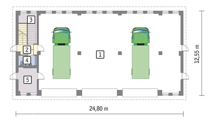 Проект склада занимает площадь 550 м2, что обеспечивает достаточное пространство для хранения и складирования товаров различных категорий. Высота ворот до 3,5 м позволяет удобно осуществлять погрузочно-разгрузочные операции как с помощью грузоподъемной техники, так и вручную.